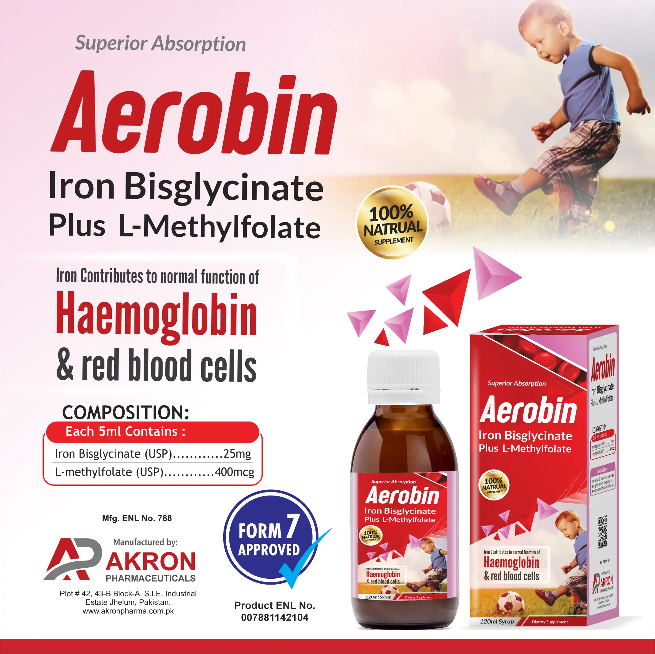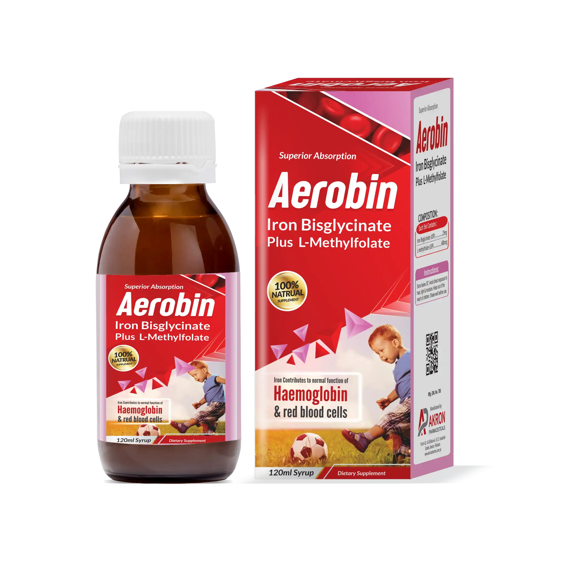 Aerobin Syrup is a high-quality iron supplement formulated with Iron Bisglycinate and L-Methyl Folate, providing optimal support for blood health. Iron Bisglycinate is highly bioavailable for better absorption, while L-Methyl Folate supports red blood cell formation and overall vitality.