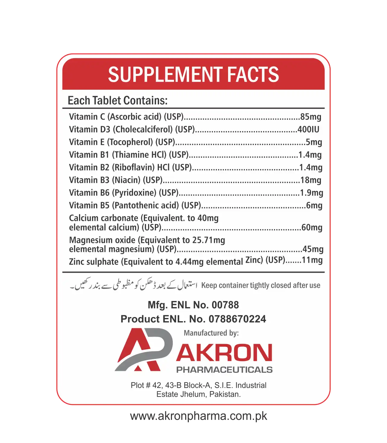 Mivit Tablet is a premium multivitamin and multimineral supplement formulated to meet the daily nutritional needs of men and women. It provides a balanced combination of essential vitamins and minerals that support energy production, immune function, brain health, and overall vitality.
